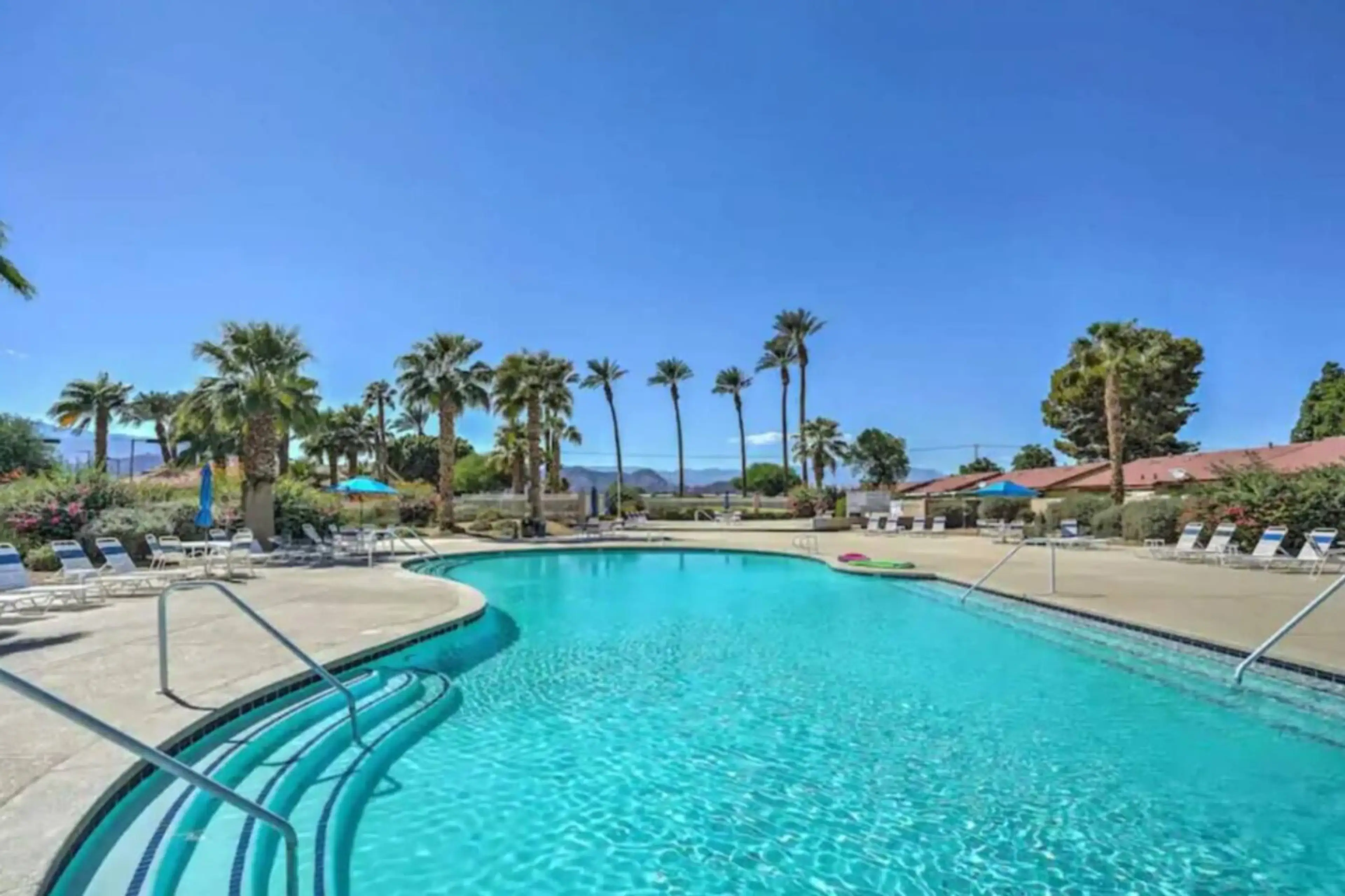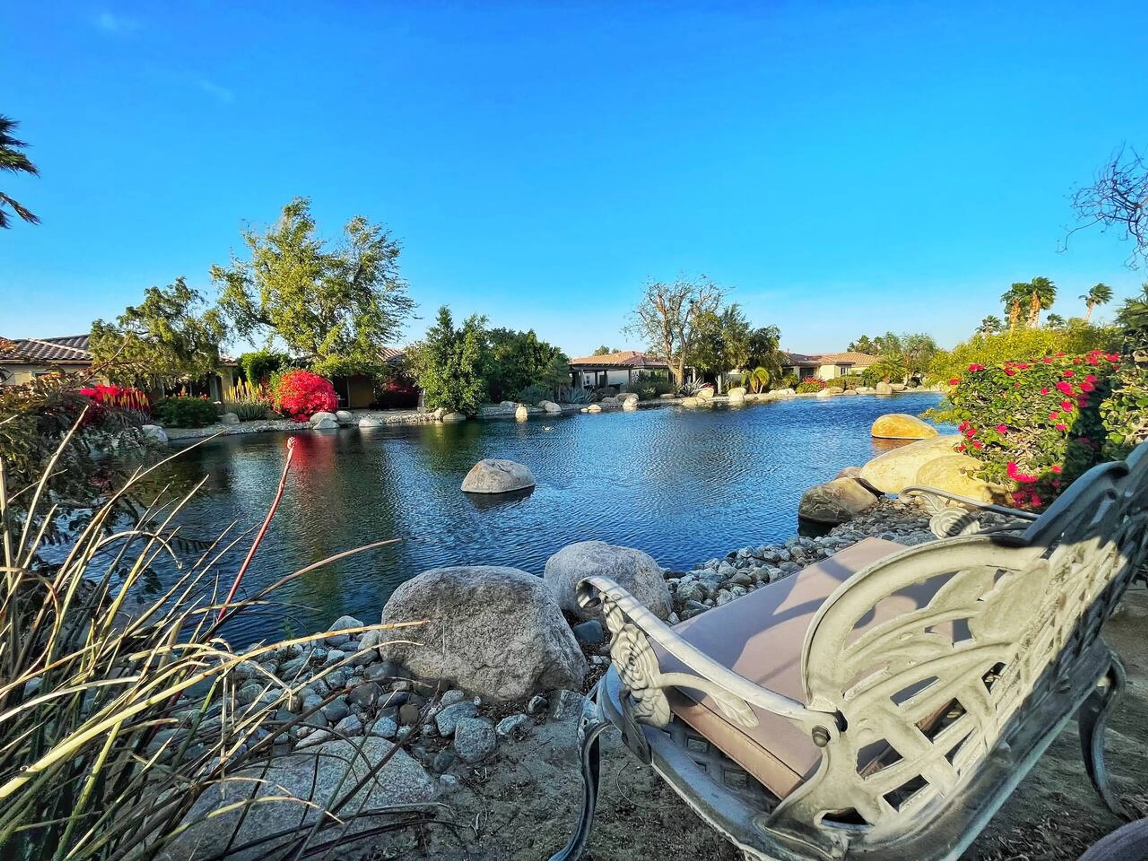Welcome to this aesthetic staycation located on a beautiful lake. The gated community of Indian Palms offers you access to multiple swimming pools/spas and we provide a golf cart to ride around and enjoy. Walking distance from the Coachella Music Festivals. Enjoy 3 pools/spas, golf course, tennis co...